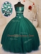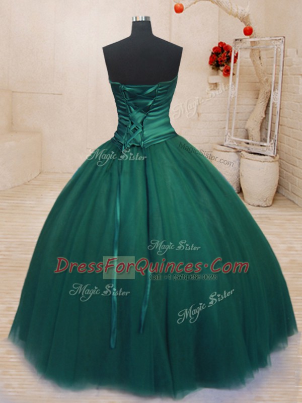 Artistic Strapless Sleeveless Sweet 16 Dresses Floor Length Beading Dark Green Tulle