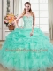 Attractive Apple Green Sleeveless Floor Length Beading and Ruffles and Pick Ups Lace Up Quinceanera Gowns