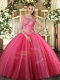 Ball Gowns Sweet 16 Dress Coral Red Scoop Tulle Sleeveless Floor Length Lace Up