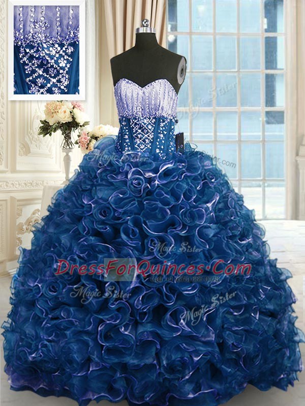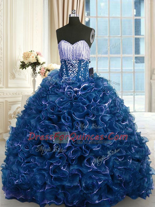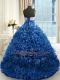 Beading and Ruffles Quinceanera Gown Navy Blue Lace Up Sleeveless With Brush Train