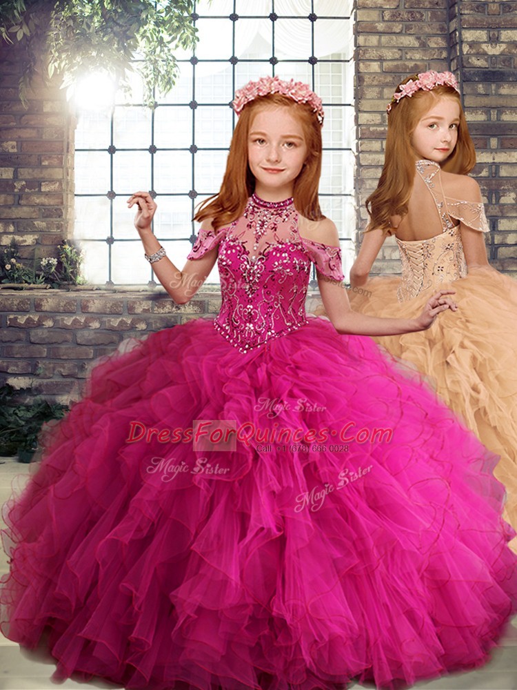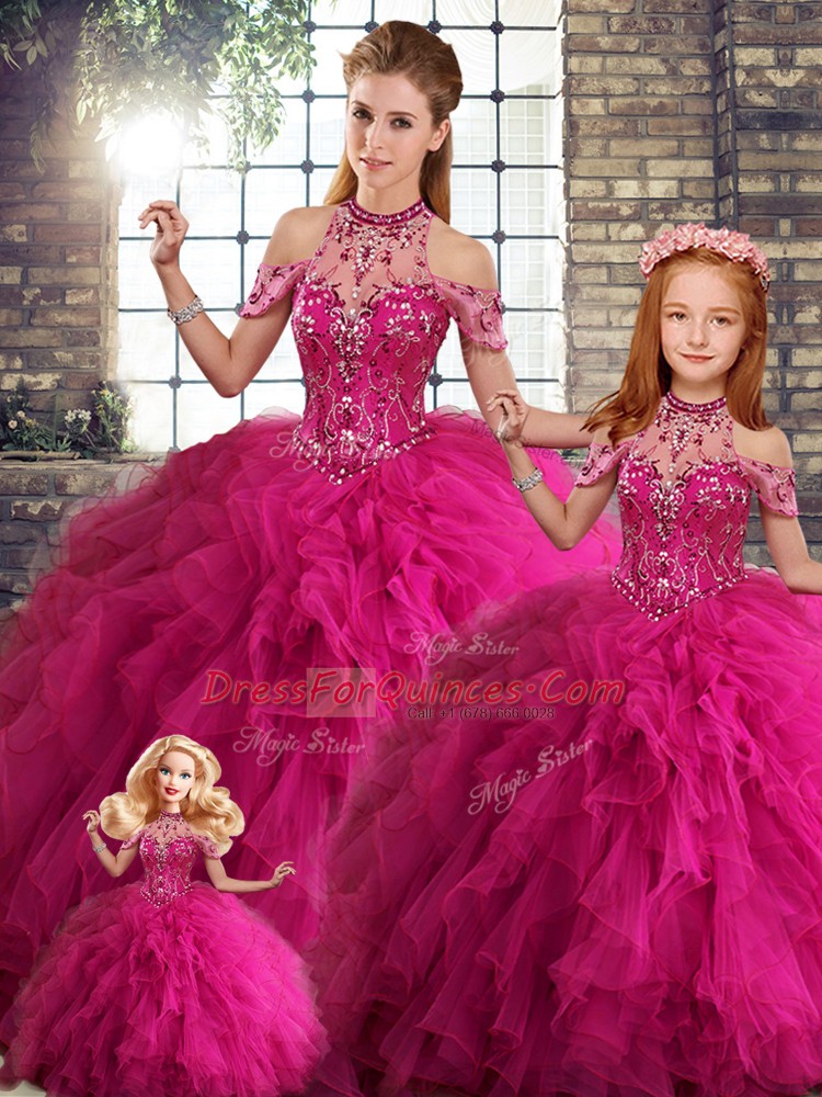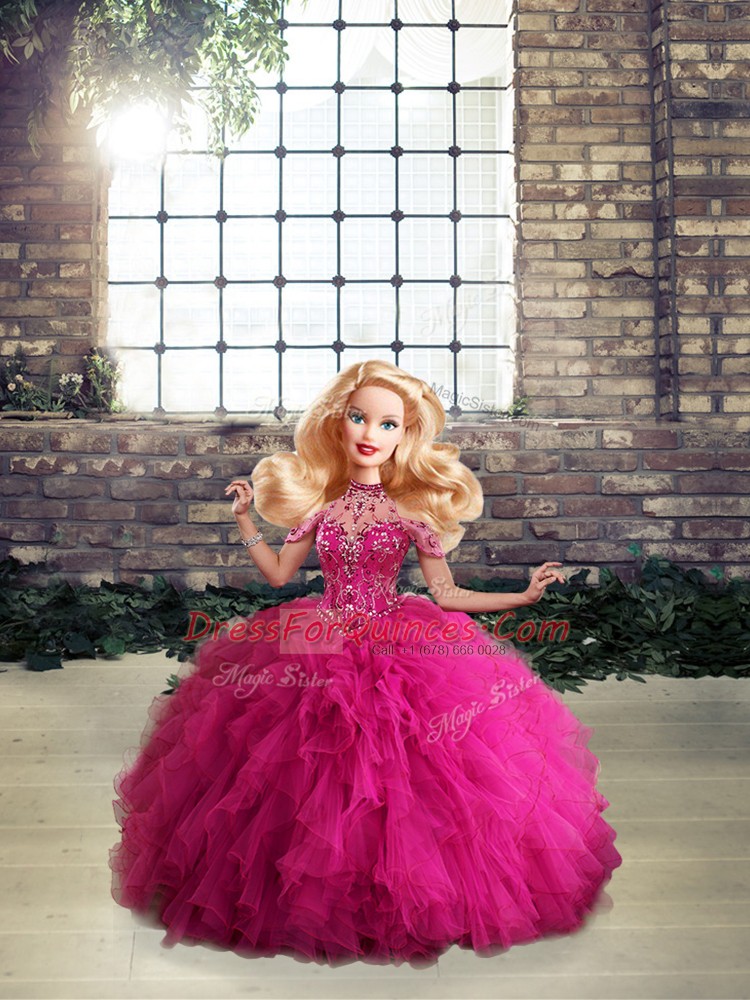 Beading and Ruffles Sweet 16 Dresses Fuchsia Lace Up Sleeveless Floor Length
