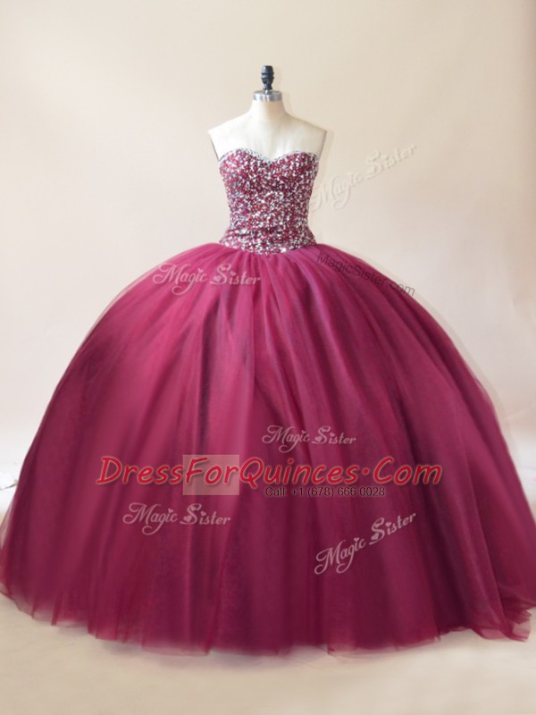 Beading Sweet 16 Dresses Burgundy Lace Up Sleeveless Floor Length