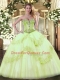 Beauteous Yellow Green Sleeveless Tulle Lace Up Vestidos de Quinceanera for Sweet 16 and Quinceanera