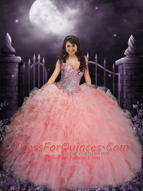 Beautiful Baby Pink Sweetheart Quinceanera Dresses with Beading and Sequins For 2014