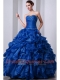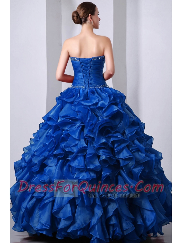 Blue A-Line / Princess Sweetheart Quinceanea Dress with Organza Beading and Rufffles
