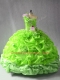 Charming Sleeveless Organza Floor Length Lace Up Ball Gown Prom Dress in with Ruching and Hand Made Flower