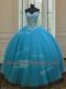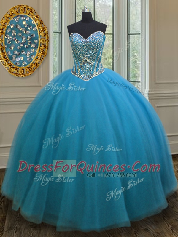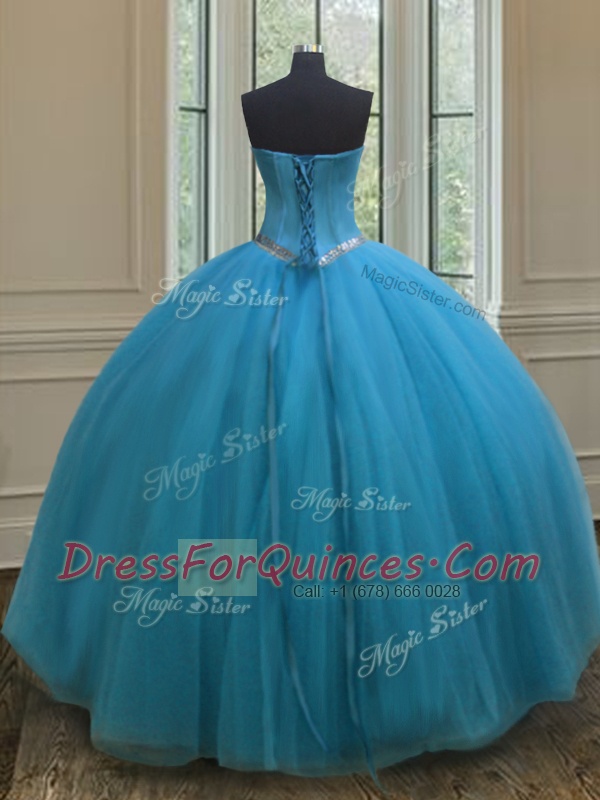 Charming Teal Ball Gowns Sweetheart Sleeveless Tulle Floor Length Lace Up Beading Quinceanera Dresses
