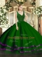 Cheap Sleeveless Floor Length Beading and Lace and Ruffled Layers Backless 15 Quinceanera Dress with Dark Green