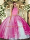 Chic Hot Pink Two Pieces Tulle Halter Top Sleeveless Beading and Ruffles Floor Length Backless Sweet 16 Dress