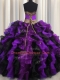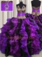Clearance Leopard Multi-color Organza Lace Up V-neck Sleeveless Floor Length Quinceanera Gown Beading and Ruffles