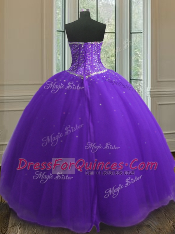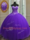 Custom Designed Sleeveless Tulle Floor Length Lace Up Vestidos de Quinceanera in Purple with Beading and Sequins