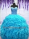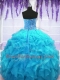 Custom Fit Baby Blue Sweetheart Neckline Beading and Ruffles 15 Quinceanera Dress Sleeveless Lace Up