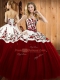 Custom Fit Floor Length Wine Red Quinceanera Dresses Satin and Tulle Sleeveless Embroidery