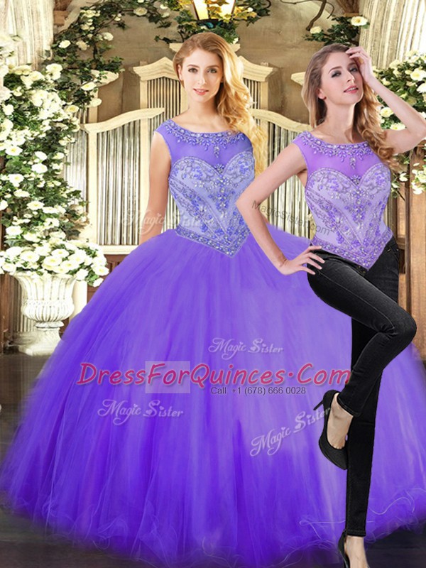 Decent Scoop Sleeveless Tulle Ball Gown Prom Dress Beading Zipper