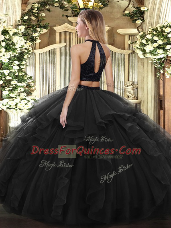 Decent Tulle Halter Top Sleeveless Backless Beading and Ruffles Quinceanera Gown in Brown