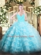 Delicate Aqua Blue Zipper Quince Ball Gowns Ruffled Layers Sleeveless Floor Length
