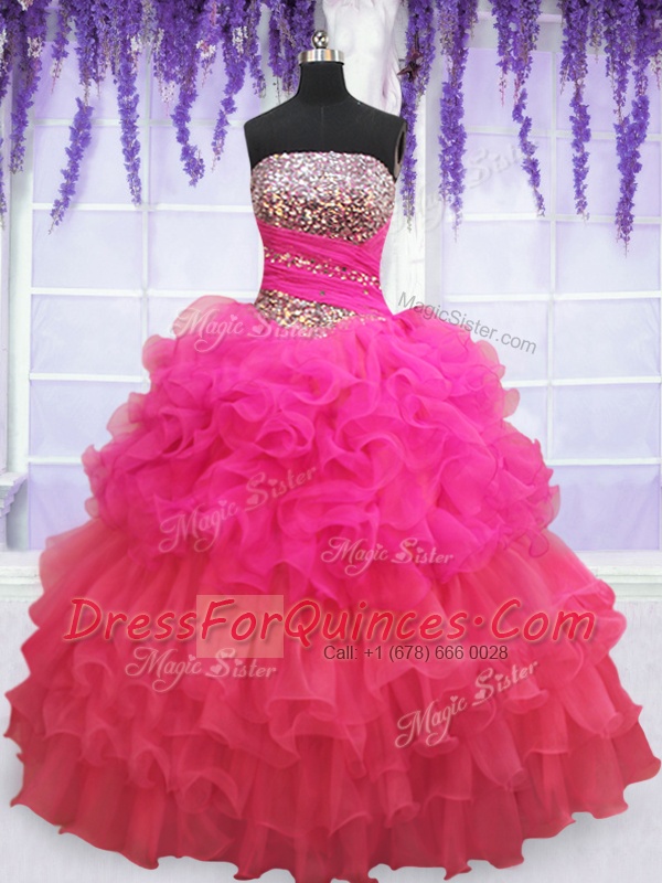 Deluxe Sequins Ruffled Floor Length Ball Gowns Sleeveless Multi-color 15th Birthday Dress Lace Up