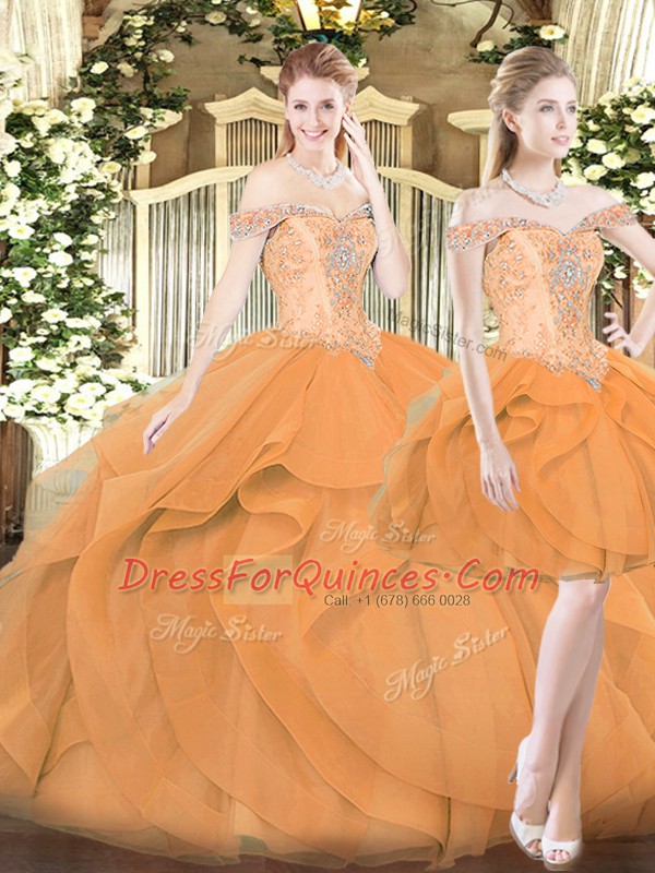 Designer Orange Red Sleeveless Ruffles Floor Length Vestidos de Quinceanera