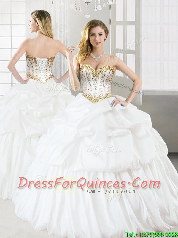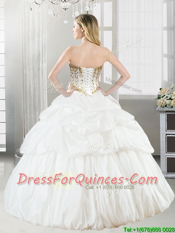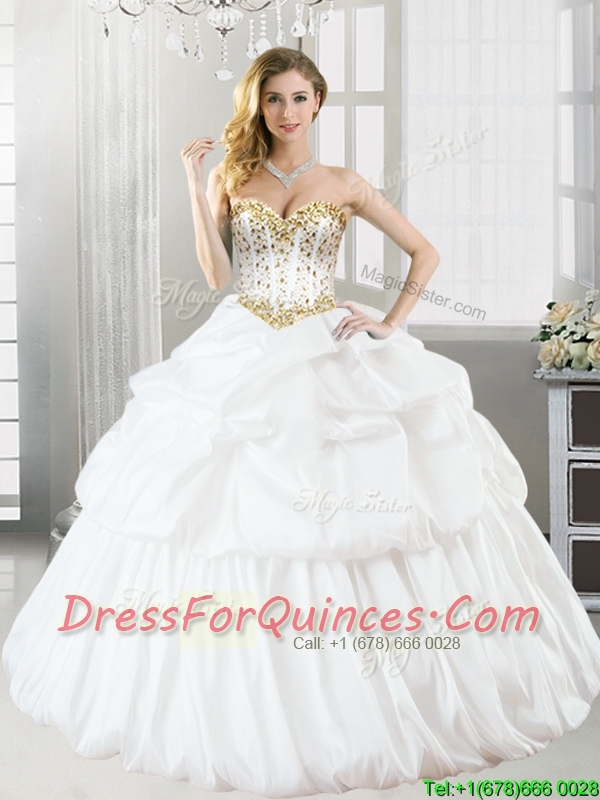 Discount Taffeta White Quinceanera Dress with Beading and Pick Ups