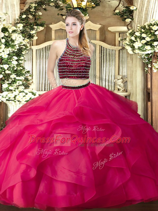 Dramatic Sleeveless Zipper Floor Length Beading and Ruffles Ball Gown Prom Dress