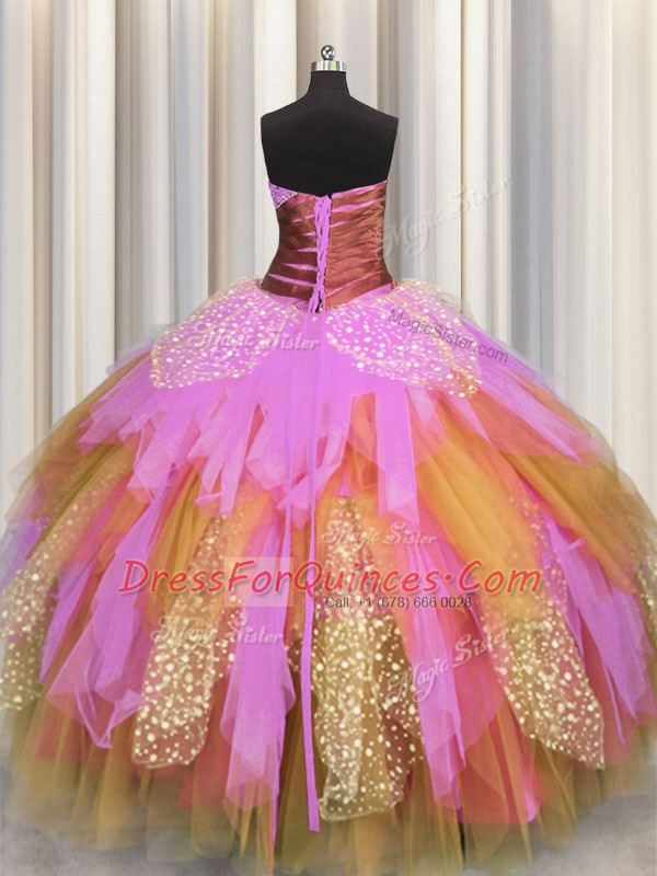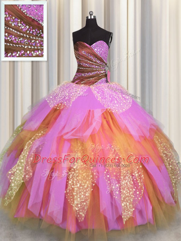 Dynamic Multi-color Lace Up Sweetheart Beading and Ruching Quinceanera Gowns Tulle Sleeveless