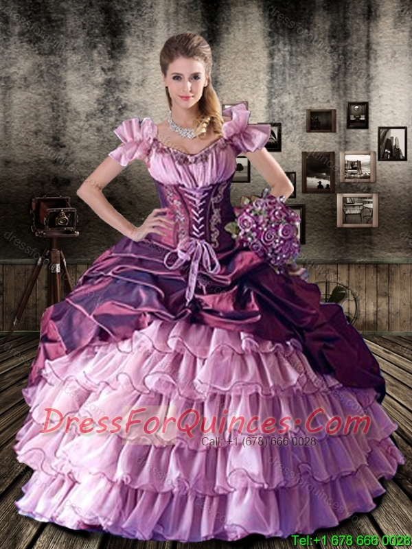 Dynamic V Neck Pick Ups Quinceanera Dresses with Ruffled Layers