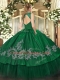 Elegant Green Taffeta Backless Sweet 16 Quinceanera Dress Sleeveless Floor Length Beading and Lace and Appliques