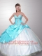 Elegant Sweetheart White and Blue Quincenera Dress with Appliques and Beading
