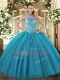 Excellent Teal Sleeveless Floor Length Beading and Embroidery Lace Up Quinceanera Gowns