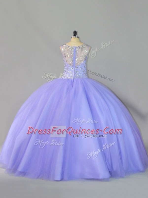 Exceptional Tulle Sleeveless Floor Length Quinceanera Gown and Sequins