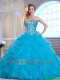 Exquisite Aqua Blue Sweet 16 Gowns with Beading and Ruffles