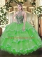 Eye-catching Organza Lace Up Halter Top Sleeveless Floor Length Quinceanera Dresses Beading and Ruffles