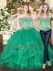 Eye-catching Turquoise 15 Quinceanera Dress Military Ball and Sweet 16 and Quinceanera with Beading and Ruffles Sweetheart Sleeveless Lace Up
