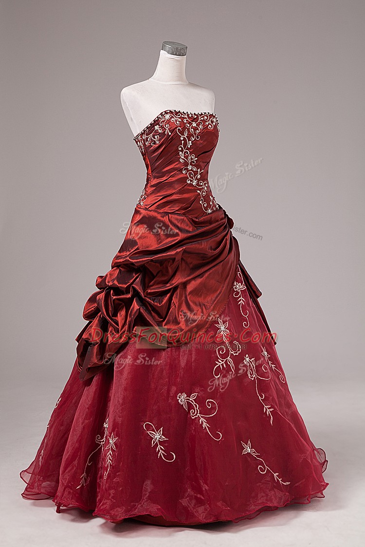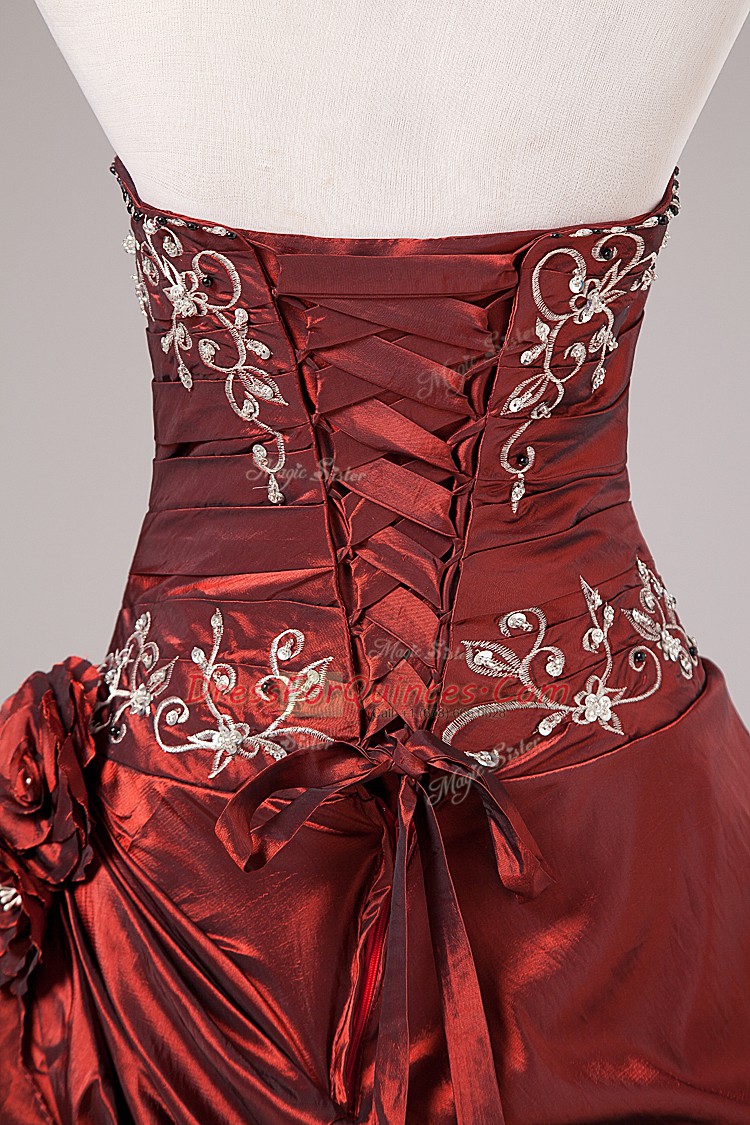 Fabulous Burgundy Strapless Neckline Beading and Embroidery Sweet 16 Dresses Sleeveless Lace Up