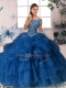 Fabulous Organza Scoop Sleeveless Brush Train Zipper Beading and Pick Ups Quinceanera Gown in Royal Blue
