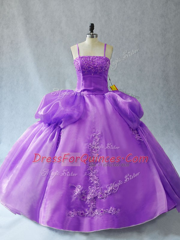 Fantastic Lavender Spaghetti Straps Lace Up Appliques Ball Gown Prom Dress Sleeveless