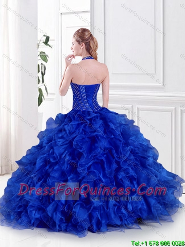 Fashionable Beaded and Ruffles Quinceanera Dresses with Halter Top