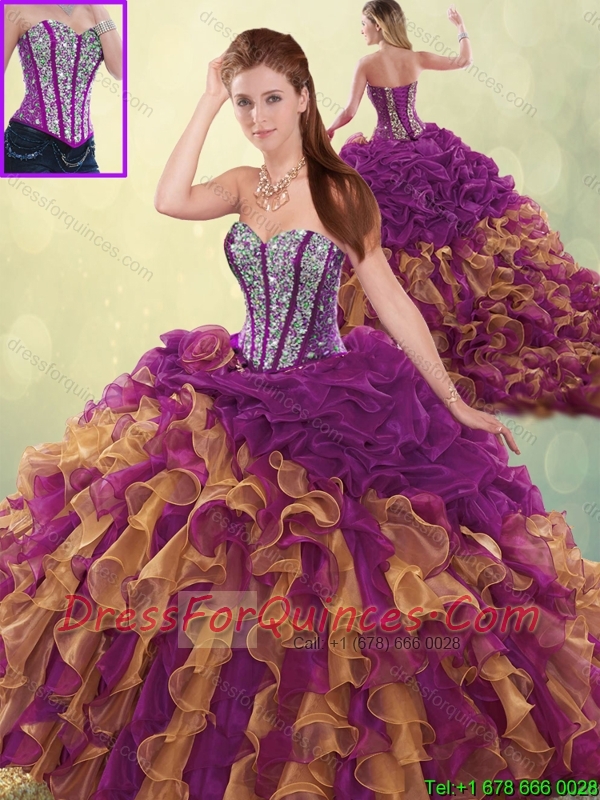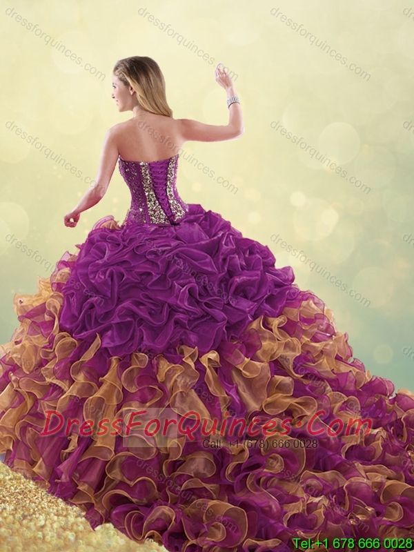 Fashionable Brush Train Beading Sweet 16 Dresses in Multi Color