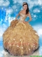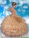 Fashionable Strapless Beading and Ruffles Quinceanera Gowns in Champagne
