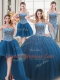 Fine Four Piece Teal Sleeveless Floor Length Beading Lace Up Quinceanera Dresses