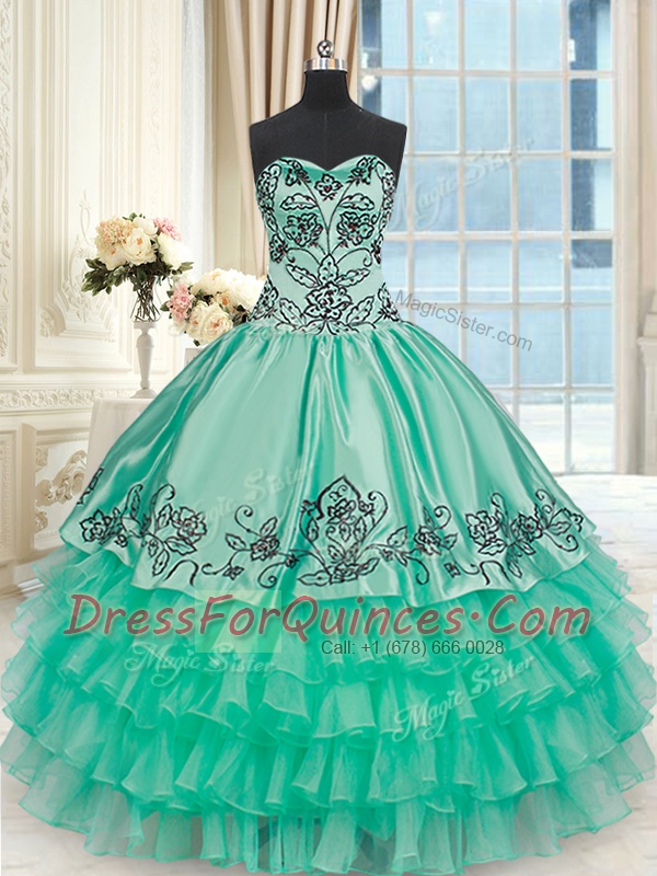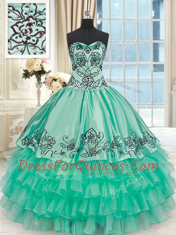 Flirting Organza and Taffeta Sweetheart Sleeveless Lace Up Embroidery and Ruffled Layers Quinceanera Dress in Turquoise