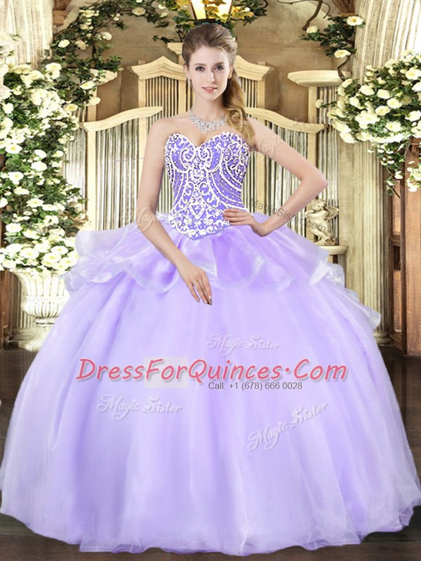 Floor Length Ball Gowns Sleeveless Lavender Sweet 16 Quinceanera Dress Lace Up