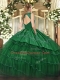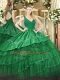 Floor Length Green Quinceanera Gown Satin and Tulle Sleeveless Beading and Embroidery and Ruffled Layers