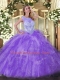 Floor Length Lavender Quinceanera Dress Scoop Sleeveless Zipper