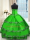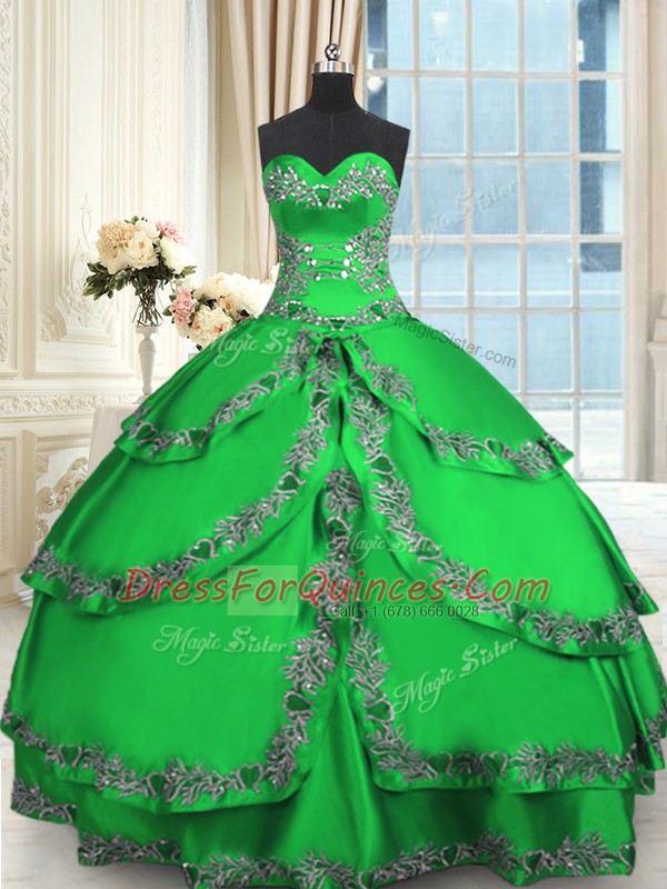 Free and Easy Taffeta Sweetheart Sleeveless Lace Up Beading and Embroidery and Ruffled Layers Quince Ball Gowns in Green