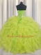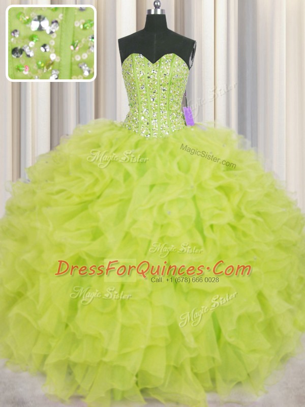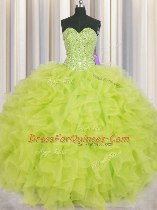 Free and Easy Visible Boning Yellow Green Lace Up Sweetheart Beading and Ruffles Quinceanera Dresses Organza Sleeveless