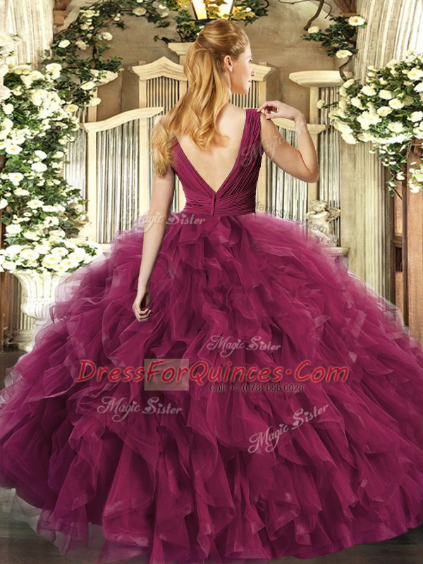 Fuchsia Backless Ball Gown Prom Dress Beading Sleeveless Floor Length