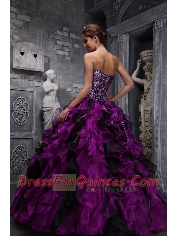 Fuchsia Sweetheart Quinceanera Dress Zebra and Organza Ruffles Beading