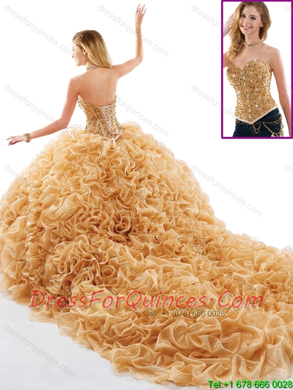 Gorgeous Beading and Ruffles Quinceanera Dresses with Chapel Train