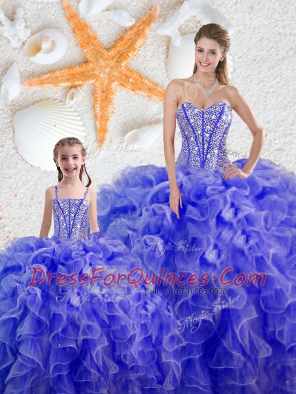 Graceful Beading and Ruffles Quinceanera Gown Blue Lace Up Sleeveless Floor Length
